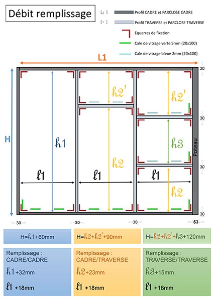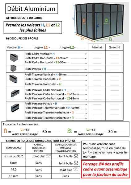 Après mise en place du verre, les parcloses pour séparation viennent se clipser sur le profil poteau.